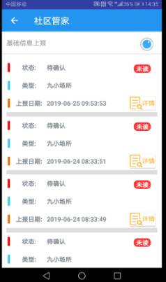 5.基礎信息上報:上級領導和社區民警可查看基礎信息上報情況。點擊基礎信息按鈕跳轉基礎信息列表界面,點擊詳情查看信息詳情??蛇M行信息確認和駁回操作。