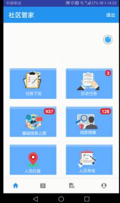 4.我的任務:網格員能夠查看社區民警下發的任務。點擊我的任務查看任務列表,點擊詳情跳轉詳情界面,點擊完成任務,提交任務信息,內容包括:提交人,提交日期,任務地點,拍照和錄音,完成任務的地點需要能夠從地圖上選擇地點。下發任務照片附件最多可以上傳4張,允許用相機拍照或從相冊中選擇。